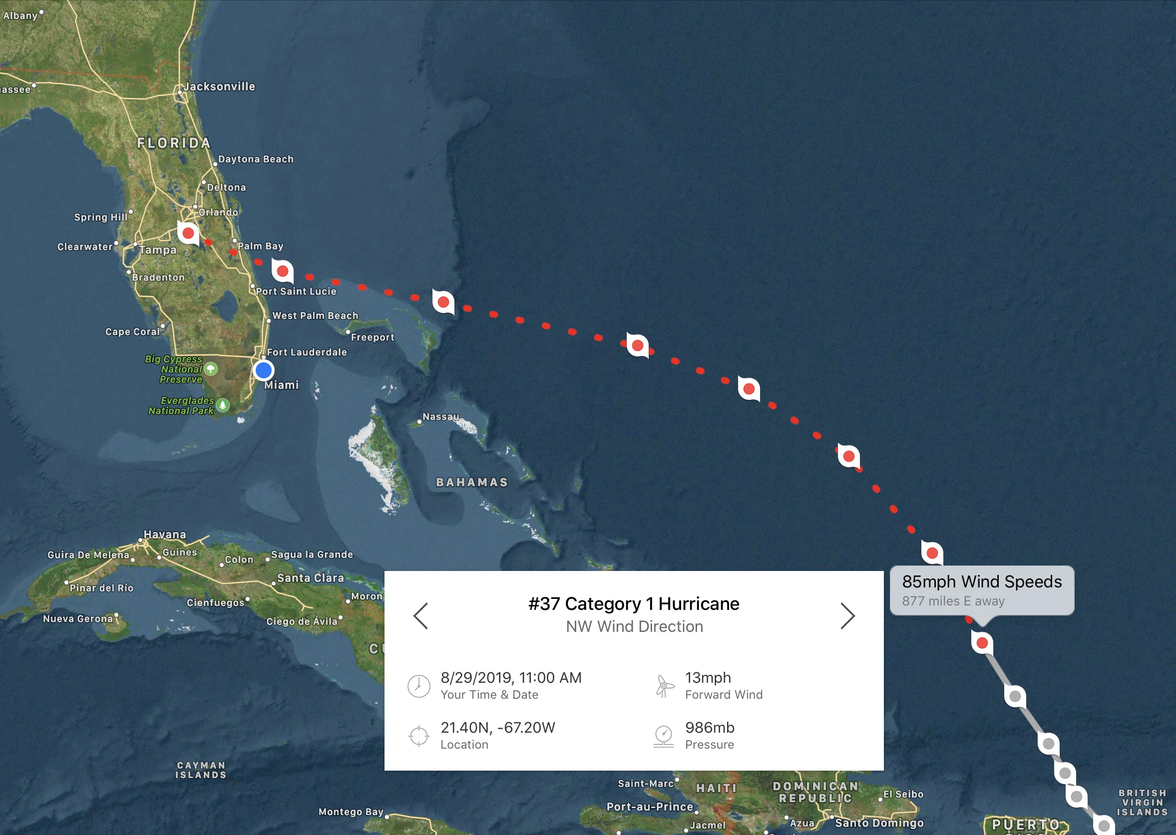 11am advisory has the storm jogging further south again. Right now, it is on track for Vero Beach area however, it is still too early.